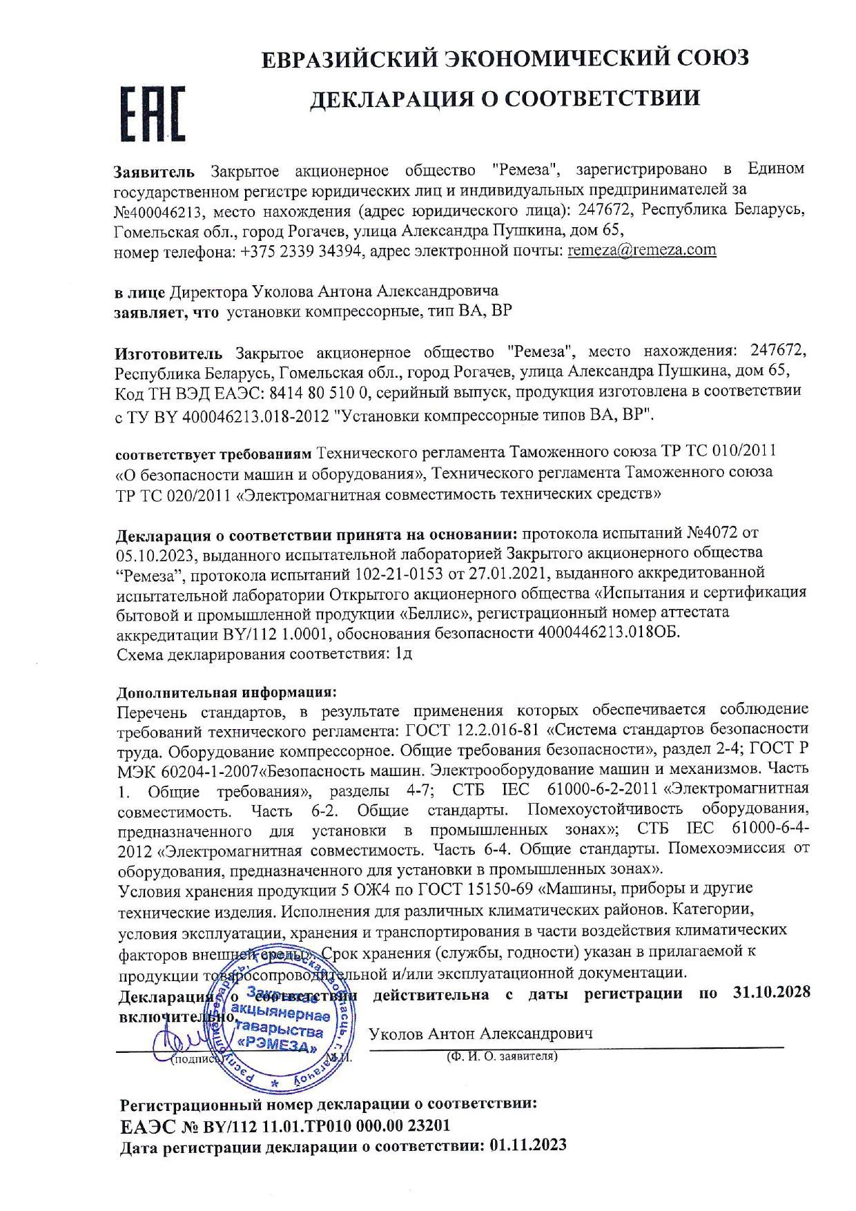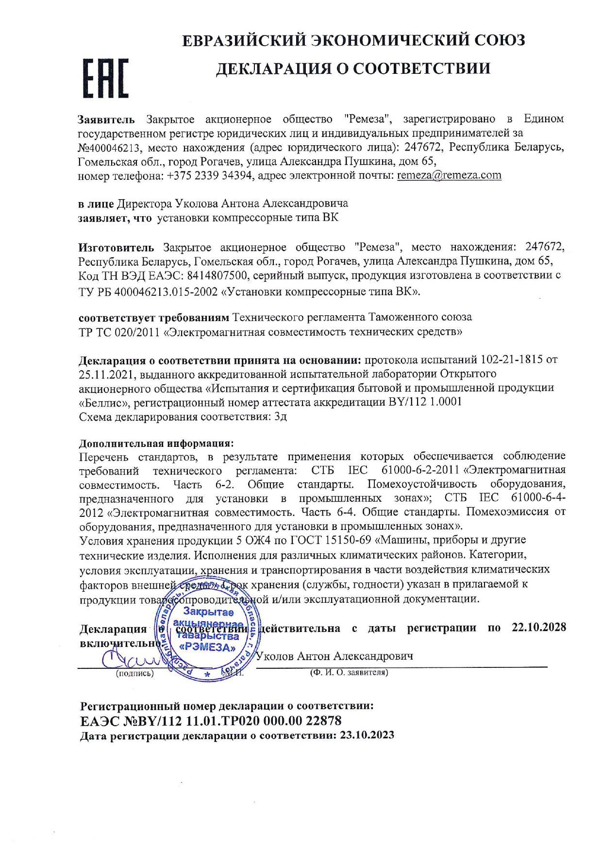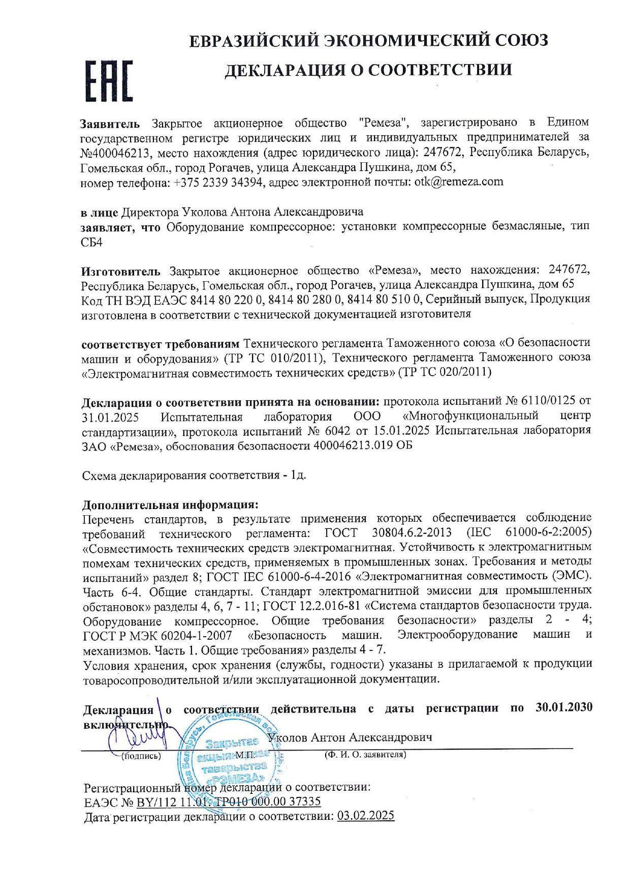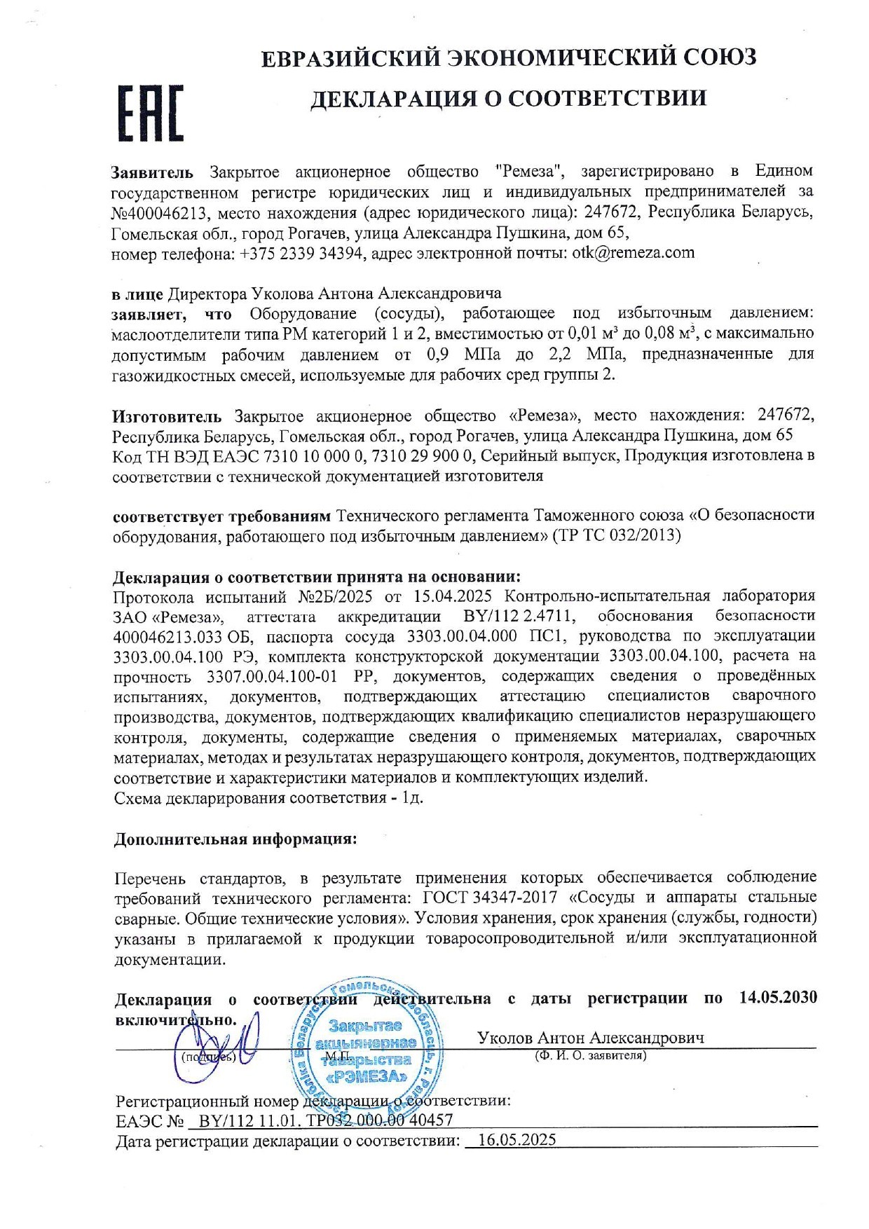 Сертификат ТР ТС РМ 230 280 2,9 МПа